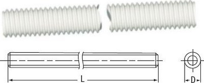 Závitové tyče plastové v délce 1000mm rozměrově shodné s DIN 975.